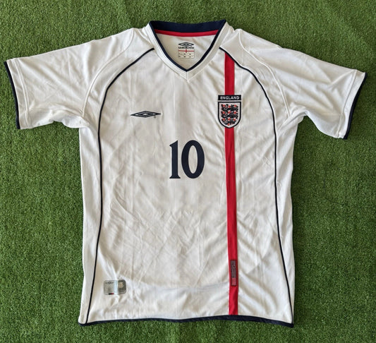 England 2001 Number 10 Retro Home Shirt Signed Michael Owen