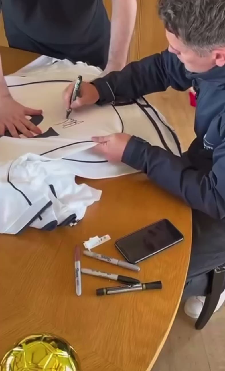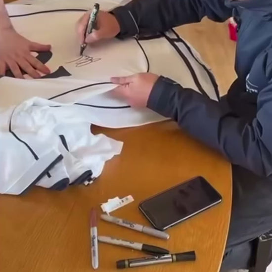 This item is hand signed by Michael Owen on an England 2001 home shirt. This item was signed in person with exact photo proof at our exclusive private signing and will come with a certificate of authenticity